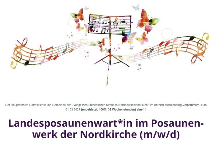 Neue Stelle ausgeschrieben: Landesposaunenwart*in in der Nordkirche Das Posaunenwerk der Evangelisch-Lutherische Kirche in Norddeutschland sucht...